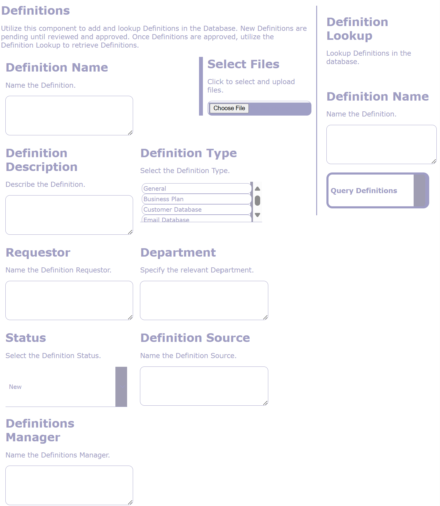 According to Merriam-Webster's Dictionary and Thesaurus, Copyright 2022, Database is unusually large collection of data organized especially for rapid search and retrieval. Power with Twizzles utilizes databases that include tables and fields of data, to save information and to retrieve information from the Business Process Components.